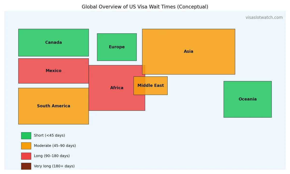 This guide breaks down current wait times by region, explains what drives the huge differences between embassies, and shows you how to find faster appointments.