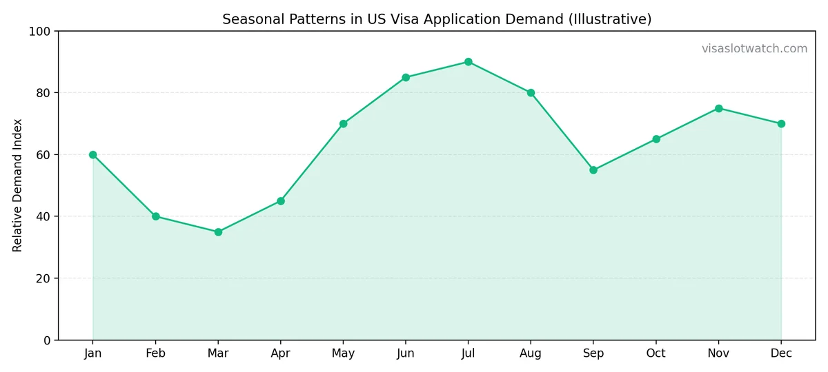 Seasonal patterns in visa application demand (illustrative index)